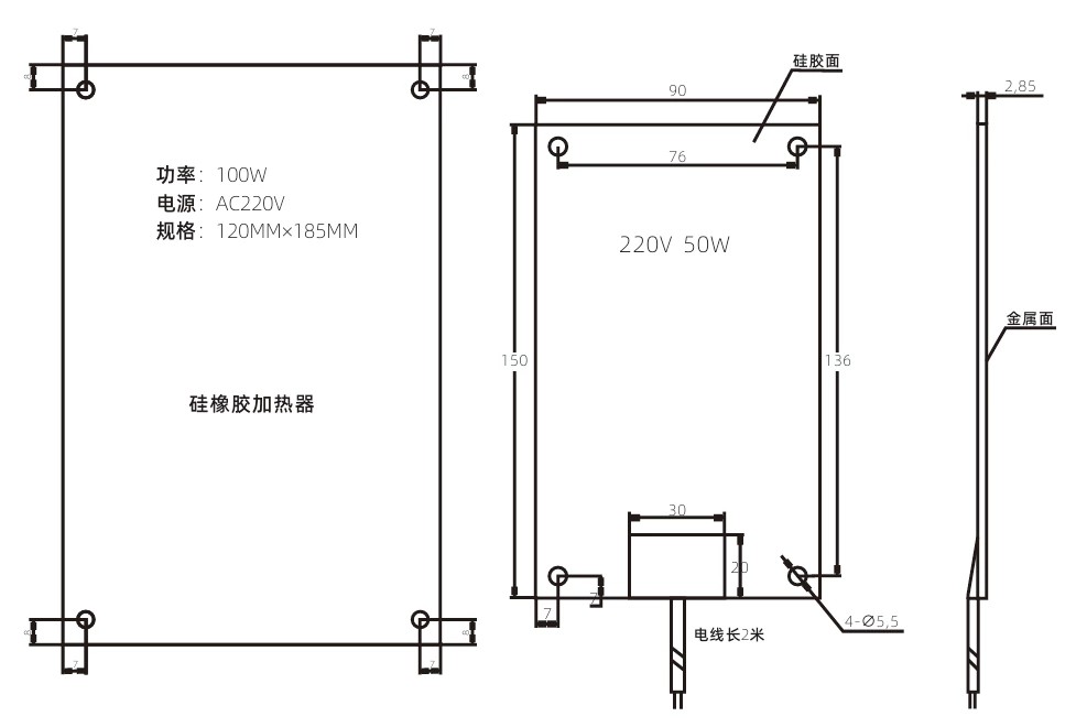 50 وات 150 میلی متر 90 میلی متر 2.8 میلی متر 136 76