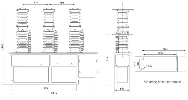 با اتخاذ یک ساختار کلی عایق چینی از نوع ستونی، عایق بالایی محل قطع کننده خلاء است در حالی که قسمت پایینی به عنوان عایق چینی ستونی عمل می کند. این محصول برای عملیات مکرر مناسب است و دارای مزایایی از جمله آب بندی قابل اعتماد، خواص ضد پیری، مقاومت در برابر فشار بالا، غیر قابل احتراق، غیر قابل انفجار بودن، عمر طولانی و نصب و نگهداری آسان است.